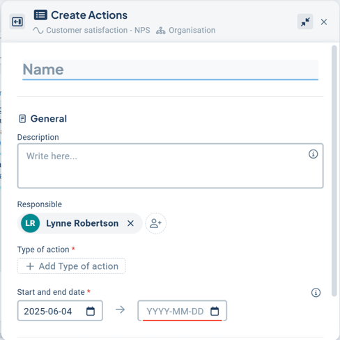 Each activity must have a start date and an end date, which define the duration of the activity. In the current version, today's date is automatically set as the start date. However, in the planning version, the start date will default to January 1st of the planning year, unless the calendar year has already changed; in that case, it will also default to today's date, just like in the current version.