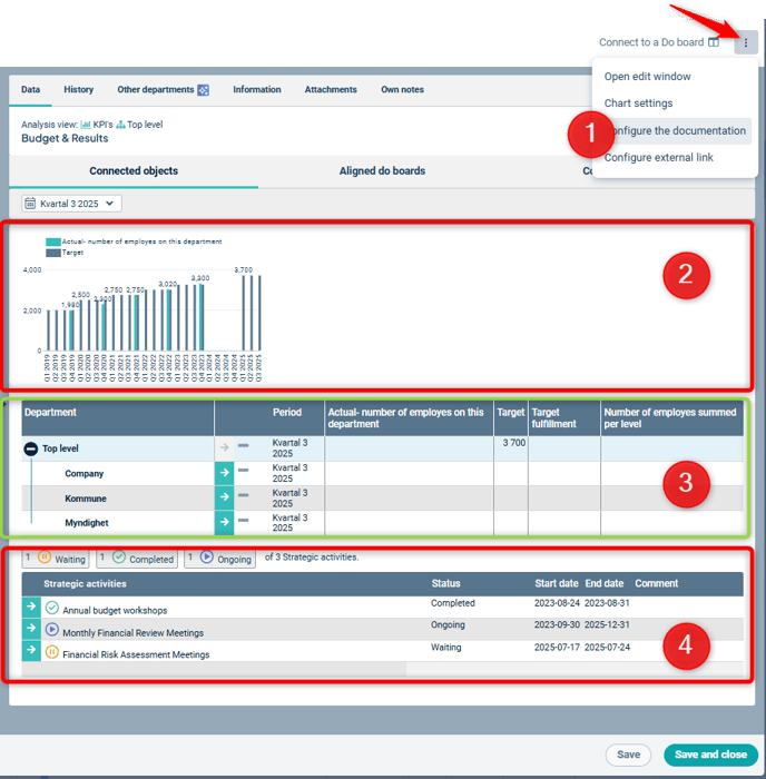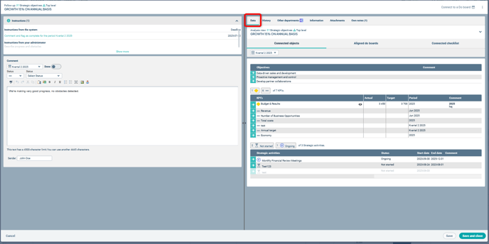 Configure your analysis views to provide the best possible data foundation when following up on goals, measures, and activities.