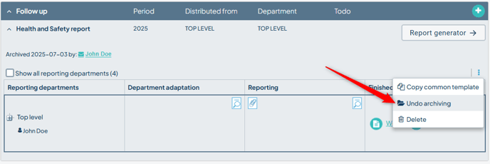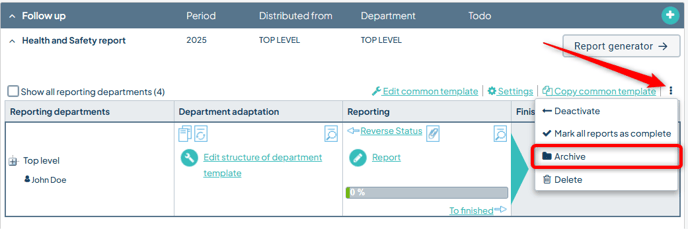It is also possible to archive a report without first marking it as complete. Click the three dots (context menu) next to the report and select "Archive".