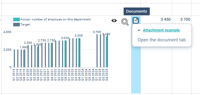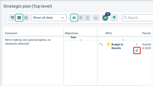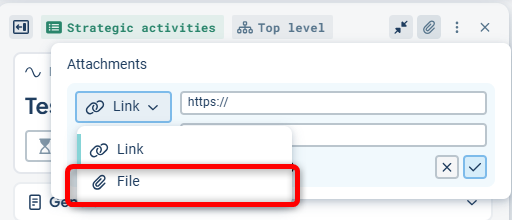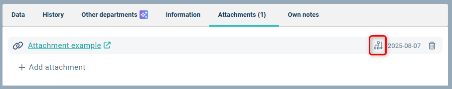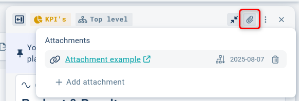 Once an attachment has been added to the object, a paperclip icon appears at the top of the window on the levels where the attachment is available.