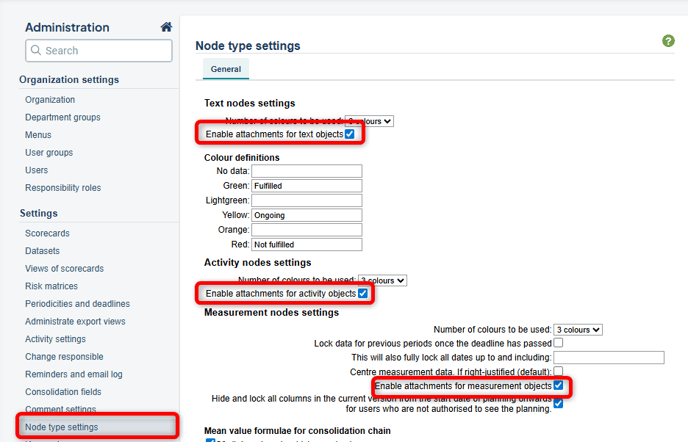 To allow users to add documents and links to different object types, this must be enabled in the Node Type Settings in the administration section. You can control this setting per object type.