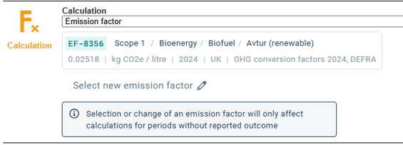 Since emission factors may have different values for different years, they may need to be adjusted when you enter data for historical periods.