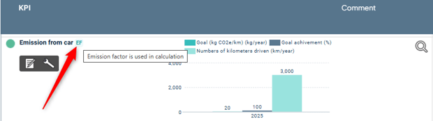A measure that uses an emission factor in its calculation will automatically receive an icon indicating this. The icon is included in the node property “Name”.