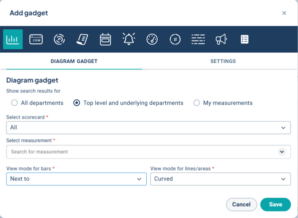 The gadget displays a chart for one measure/indicator based on the measure’s chart settings. You can only select one measure per gadget.