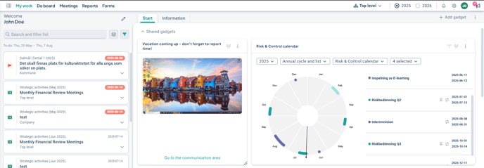 With the Communication Gadget, you can present posts with text and image on "My Work" as well as on product start pages.