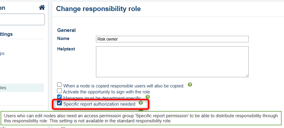 Start by configuring the responsibility role – you can see which role applies under Forms settings in the scorecard settings: