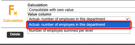 Here, you set the calculation formula to Consolidate with own value and specify your outcome column from above: