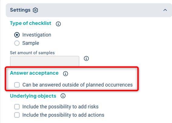 Choose whether the checklist can be answered outside of scheduled occurrences.