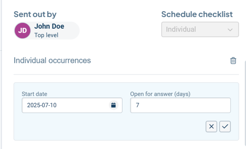 - Specify how many days the checklist should be open for responses. Confirm by clicking the checkmark.