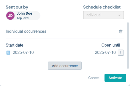 In the final step, configure when the checklist should be carried out. You can set it up for individual occurrences or repeated occurrences.