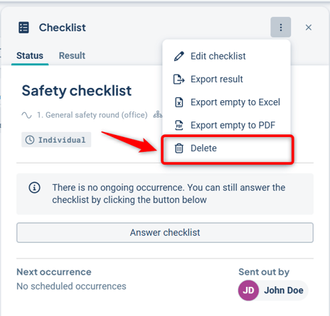 Observe: If you choose to delete a checklist, it cannot be restored.