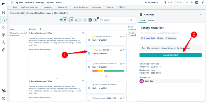 If you do allow it, the checklist can be answered as extra occurrences. These are not included in the aggregated results and are only visible for the department that completed them. Results from extra occurrences also cannot be included in reports.