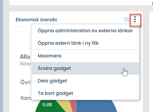 To edit the gadget after it has been added—such as changing the title or size—click the three-dot menu in the upper-right corner and select "Edit gadget", then switch to the Settings tab.
