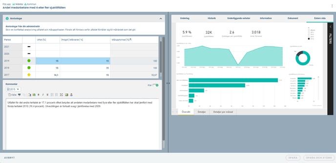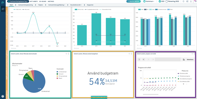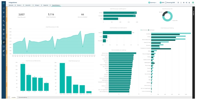 Dynamic third-party embedding is an integration that allows content from another system—such as a business intelligence platform—to be displayed inside Stratsys, dynamically based on, for example, the user's position in the organizational tree. With dynamic third-party embedding, you can display content from systems like Qlik Sense and Microsoft Power BI within Stratsys gadgets, views, and the follow-up window—with automatic filtering based on the user’s organizational unit in Stratsys.