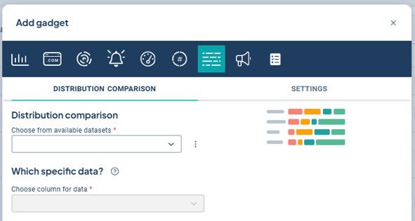 The gadget will be named "Distribution Comparison of \[selected column]". If you want to change the name, you can do so under the Settings tab.