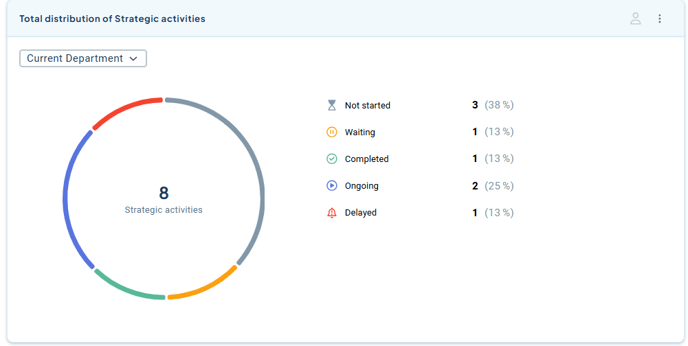 The Total Distribution gadget can display the status distribution of the total number of activities, measures with response options, numeric measures with automatically generated colors, or the number of risks in each risk level.