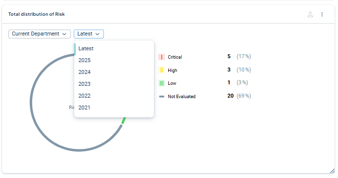 For risks, measures with response options, and measures with numerical data where the color is automatically generated, the gadget can be filtered by period if the measure data is periodic. This option is not available for activities.