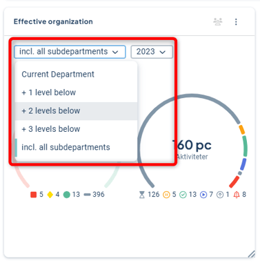 In the gadget, you can choose how many underlying levels should be displayed, and it is also possible to show measure colors from another period. These changes are temporary and only affect the individual user.