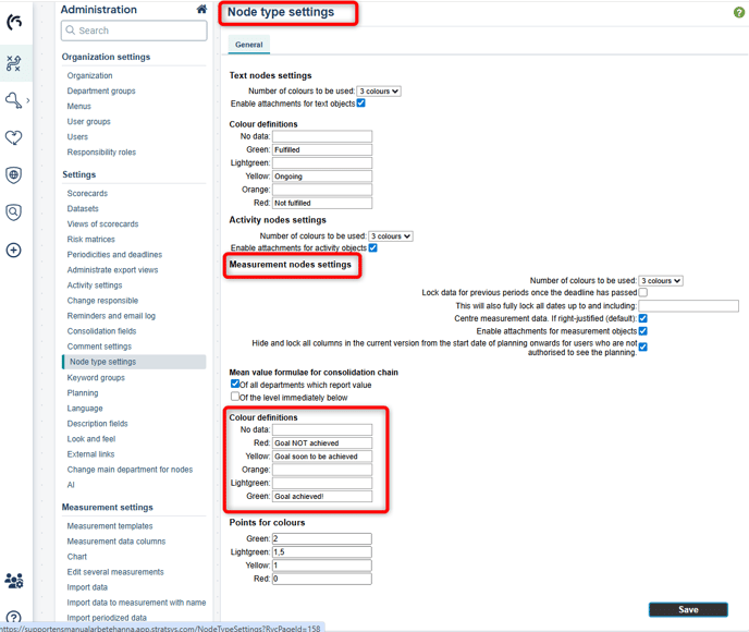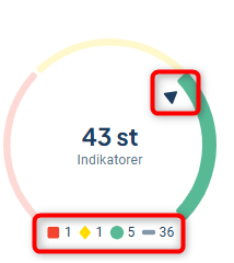 - Under mätaren visas hur många mått som finns med en viss färg för de ingående måtten. Grått avser att färg saknas. I bilden nedan är 5 av 7 mått med färg gröna, vilket gör att pilen lutar mot grönt.