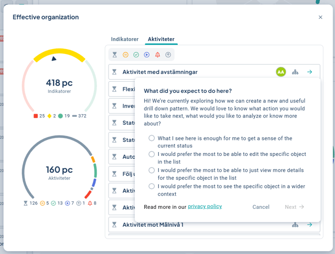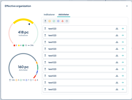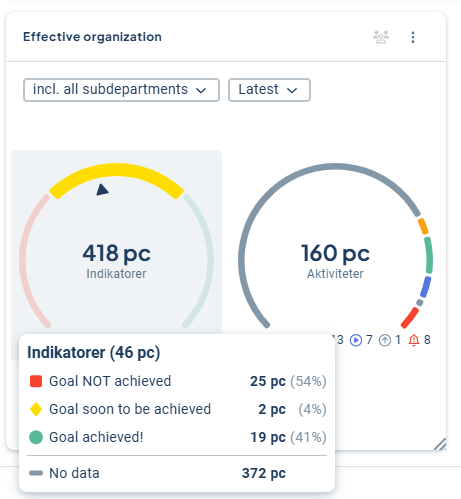 Below the gauge, the number of activities with each status among the included activities is displayed.