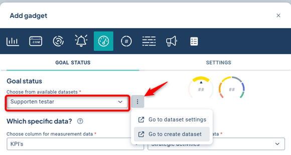 - An underlying data selection (dataset) needs to be created in order to add the gadget to dashboards. Full administrators can create datasets. Read more here: Dataset.