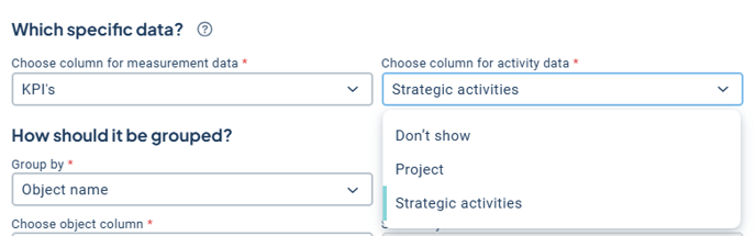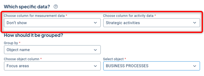 Then select the column for the measures and/or activities you want to display status for.