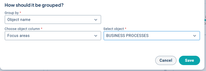 Choose to group by object name and select which column and object (node) to group the information by.