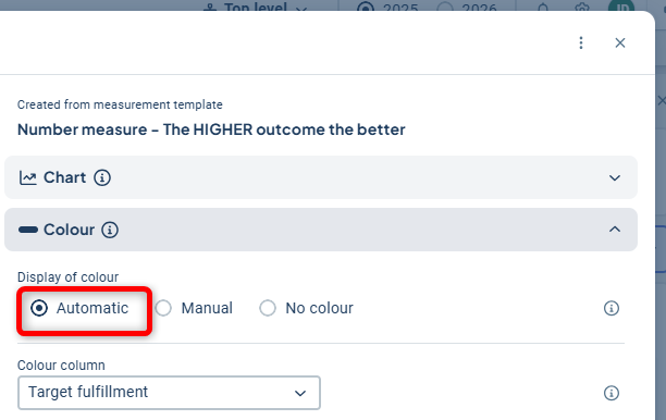 - To visualize measure data, you need to work with measures set to "automatic color."