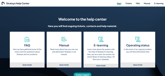 If you, as a user of Stratsys, need help with the system, you can find answers to many questions in our Help Center, which is always available in the lower left corner of the system.