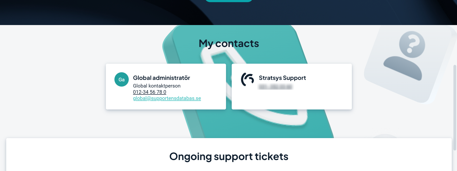 If you are an administrator, you may also have access to your contact person at Stratsys and the phone number for our support team.