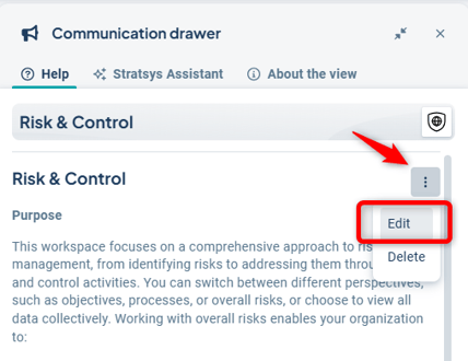 If you already have a help text that you want to edit, click on the context menu (three dots) and then select Edit.