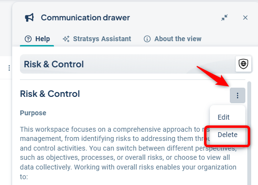 If you already have a help text that you want to delete completely, click on the context menu (three dots) and then select Delete. Then confirm the deletion in the popup dialog.