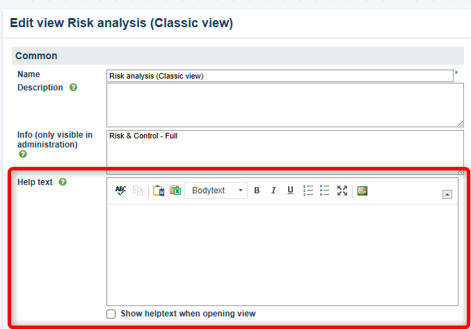 To add or edit an existing help text for the new view type, you must be a full administrator or a control model administrator for the relevant control model.