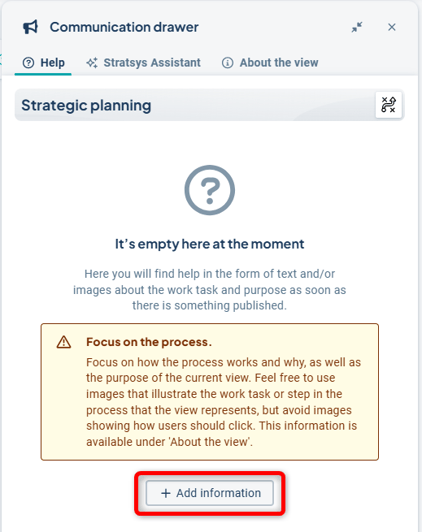 If you only see the message "The process owner will add help text here" without a button to add information, it means you do not have the permission to edit the help text yourself.