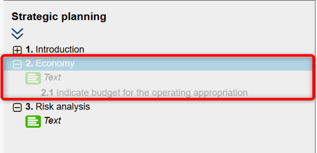 As shown in the image above, the section Economy—along with its subheadings—is hidden. As a result, within the report, the heading Risk Analysis is now assigned the number 2.