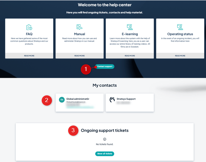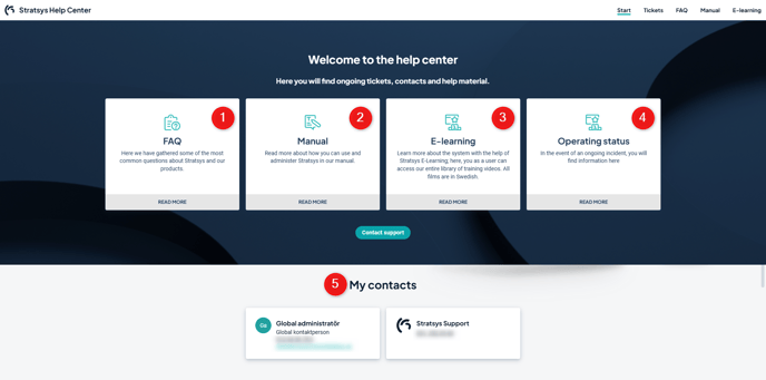 The Stratsys Help Center gives you access to the Stratsys manual, FAQ, and e-learning. If you are an administrator with the authorization to contact our technical support, you do so from here.