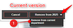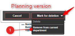 1. Select "Remove from current department", which can be found under "Remove from 2025" or in the current version and under "Mark for removal" in the planning version.