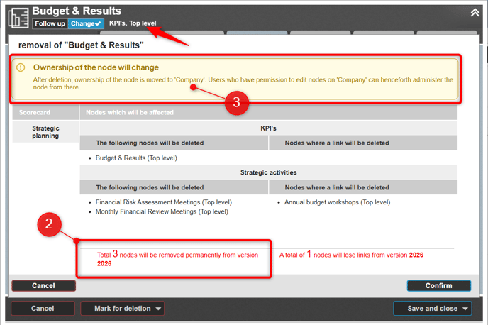 2. You will now see a confirmation showing what will be removed. If any linked nodes will be affected, this will also be displayed.