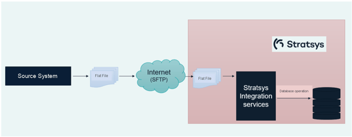 (tab-separated .txt files) via an SFTP directory hosted on a Stratsys server, where the data is then imported into Stratsys and used to update key figures.