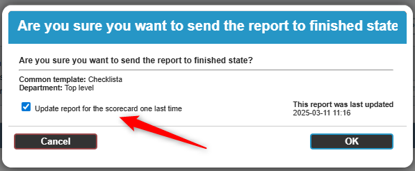 If a report is not marked as complete before version management, it will attempt to retrieve information the next time it is opened. However, this information no longer exists in what is now the current version. This results in the error message: “This report is based on a deleted version,” and the report cannot be used properly. If the report is not marked as complete, there is a risk that it will contain “empty” report sections that cannot be finalized, potentially causing the loss of work already entered in the report.