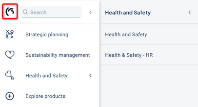 You can find your products and menus on the far left side of the system. What you see is determined by your permissions. The product menu is collapsed by default, showing only the product icons.