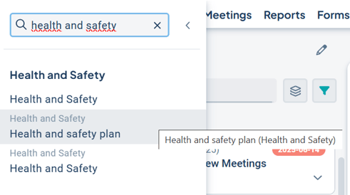 If you know the name of the menu or view you want to access, you can search for the name in the name field and then select the correct view.