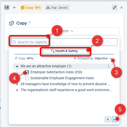 To ensure that a measure or activity is automatically distributed even when a new department is added to the organization, read the article on automatic copying.