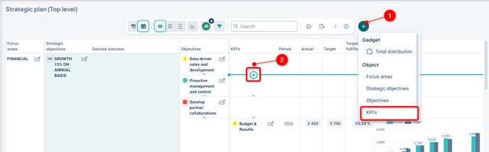 1) If you have support from Stratsys AI, click the purple icon to the right of the "+Add" button to quickly get relevant suggestions. See also the following article: Stratsys AI.![]()