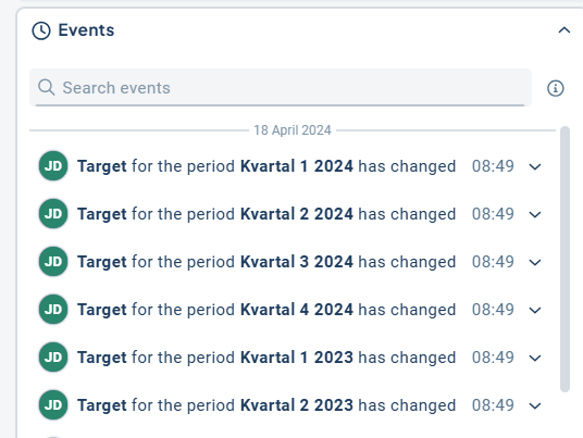 You can search for specific events using the search bar, and you can search by username, text content, date, or time of the event. The format for date and time should be YYYY-MM-DD and HH\:mm respectively, for example 2025-11-04 or 13:08.