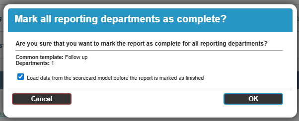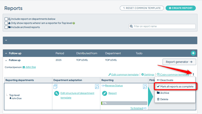 The “Mark All Reports as Complete” function allows you to mark all reports linked to the same template with a single click. This is ideal for larger organizations with many departments reporting into one report.