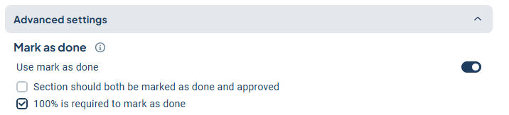 The report must not use the setting “100% required to mark as done” — this setting is found under Advanced Settings in the report settings.