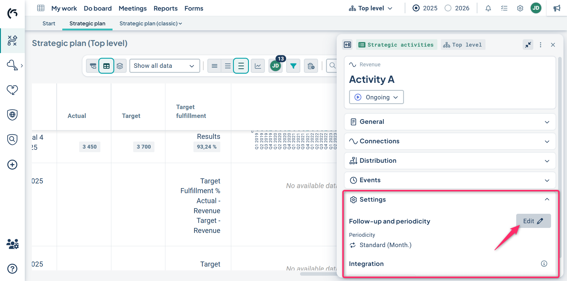 By default, the periodicity of the scorecard or scorecard column will be displayed. Choose periodicity carefully and be selective about which nodes you change. You can read more here about what happens to comments and data when changing periodicity for a column or node.