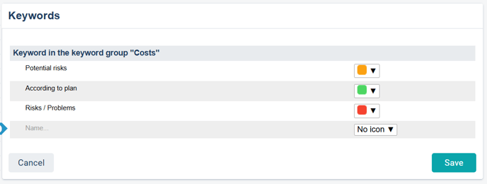 The example below shows the keyword group Costs. You can read more about how keyword groups are configured here.