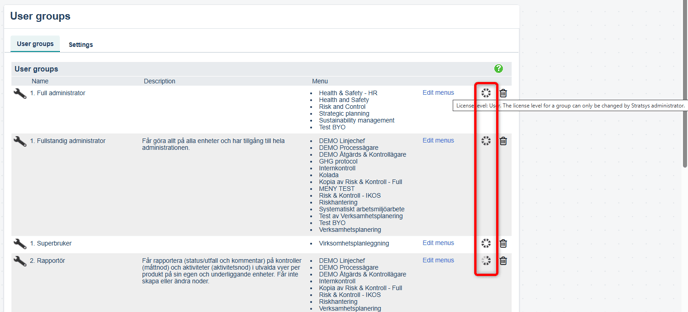 - One group for the delegate (light license) with "Special reporting permission" disabled, but still with create permission for activities in the strategy model column.